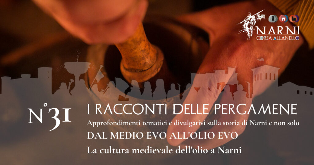 Inoltre stabiliamo che, nessuna persona permetta che l’acqua delle olive esca, o fluisca, o scorra per qualche via pubblica della città di Narni, ma quello del quale è il mulino, o il locale del Molino faccia, e curi, a sue spese, di mandare la medesima acqua sotto terra, e la ricopra in modo tale, che non appaia sopra la via. Quello, che abbia trasgredito, paghi alla Camera, come condanna, 100 soldi cortonesi, e chiunque possa denunciare ed accusare i trasgressori, e gli sia dato credito.
