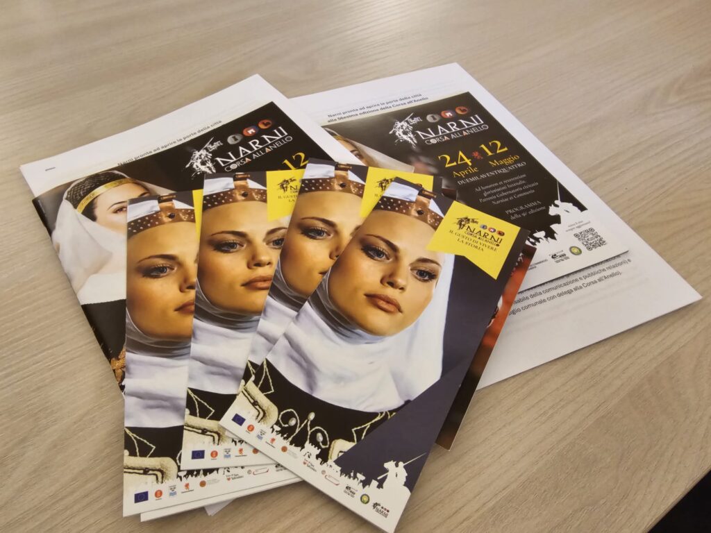 La presentazione sabato 20 aprile a Narni, nella sede dell’associazione Corsa all’Anello, alla presenza di Lorenzo Lucarelli (sindaco di Narni), Federico Montesi (presidente associazione Corsa all’Anello), Emiliano Luciani (responsabile della comunicazione e pubbliche relazioni) e Michele Francioli (presidente del Consiglio comunale con delega alla Corsa all’Anello).