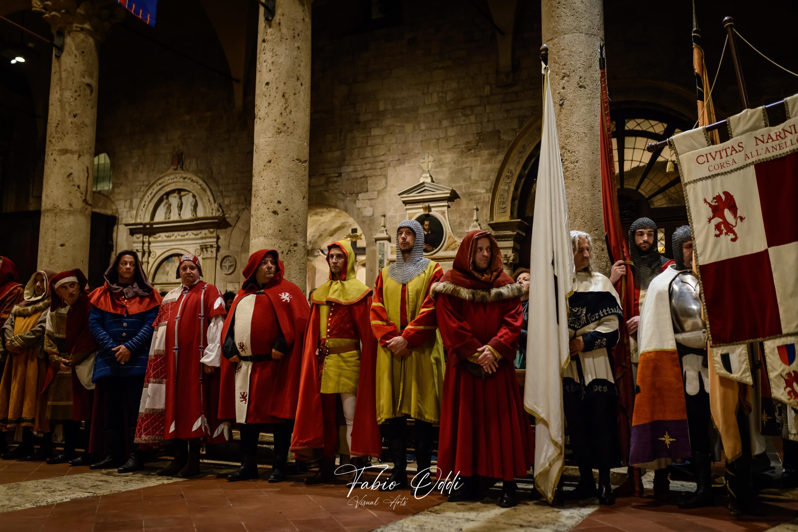 Proprio a Narni, gli statuti medievali, ci raccontano che oltre alla corsa all’anello si svolgeva anche un palio, ossia una corsa di velocità su un percorso che dalla periferia portava verso il centro.