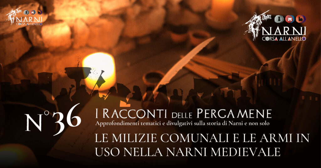 Per conoscere quale fosse l’organizzazione militare del Comune Narnese abbiamo due strade, i documenti e la storiografia. Per la prima abbiamo molti spunti proprio negli statuti comunali del 1371, dove troviamo elenchi medievali di armi e normative varie, per la seconda possiamo avvalerci della prassi in uso nei comuni italiani.
